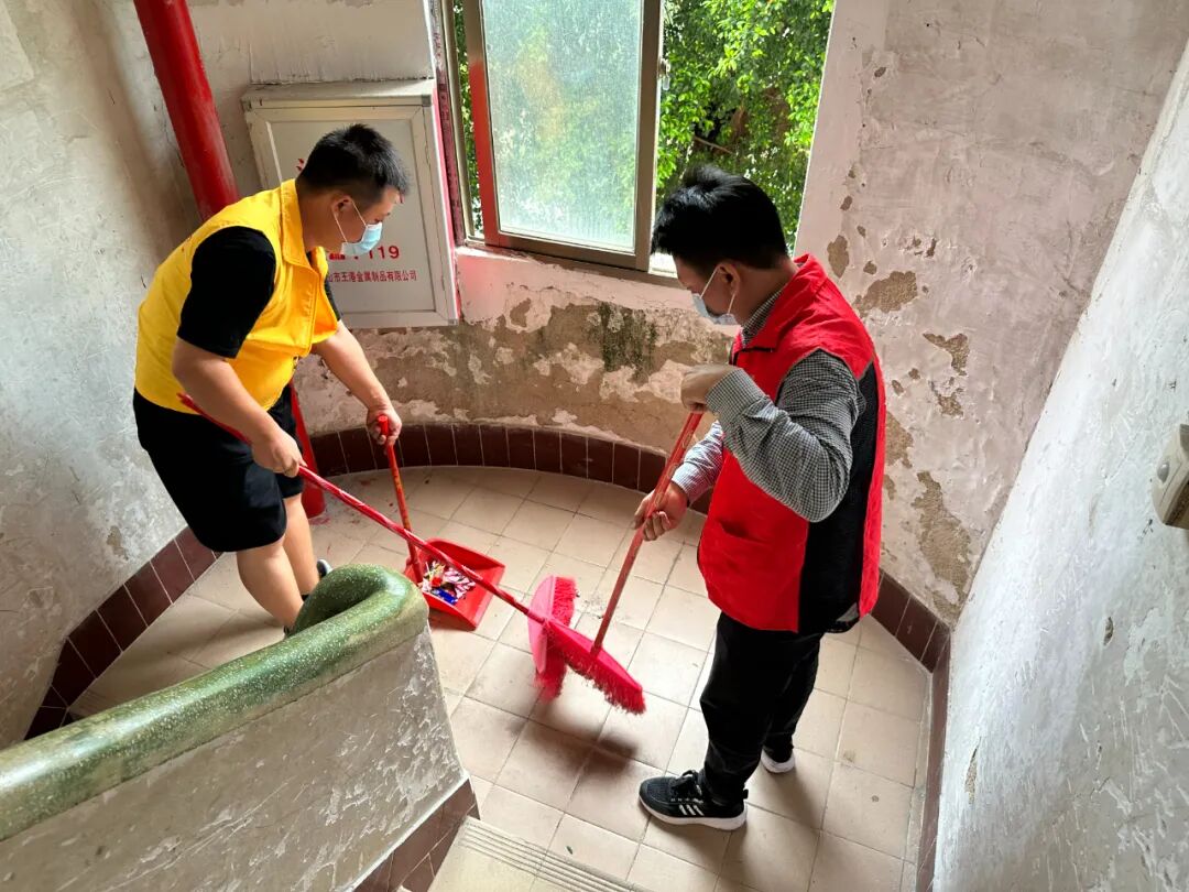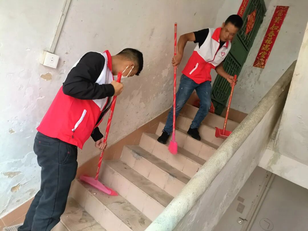 大家分工合作,互相配合,从上至下逐层认真打扫,重点对楼道灰尘和死角进行清理,深入各个楼道进行排查,对角落里堆放的杂物和垃圾进行集中清理,一点一点地收拾整齐,圆满完成了志愿服务任务。