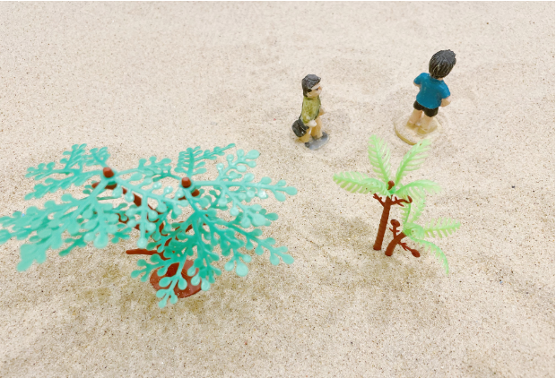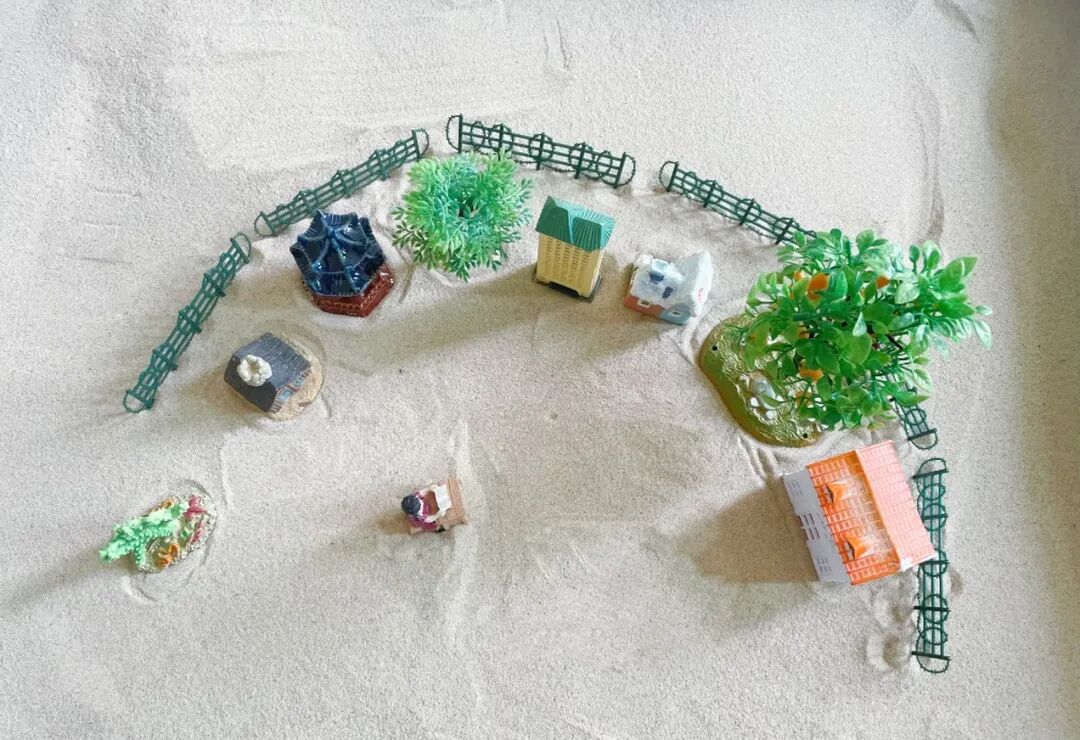 在首次沙盘治疗时,芯芯显得没什么兴趣,仅选择了寥寥几个模型。在宽敞的大沙盘中,她布置出老家的小院子,宛如一座孤独无依的岛屿。在心理治疗师的耐心引导下,芯芯敞开心扉,述说了她的困扰。