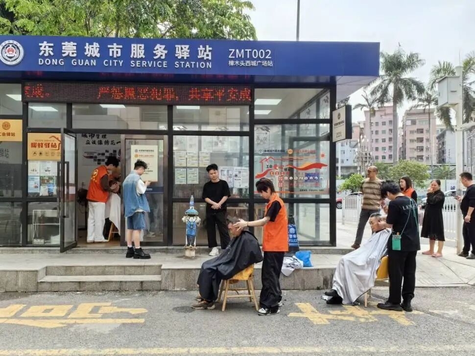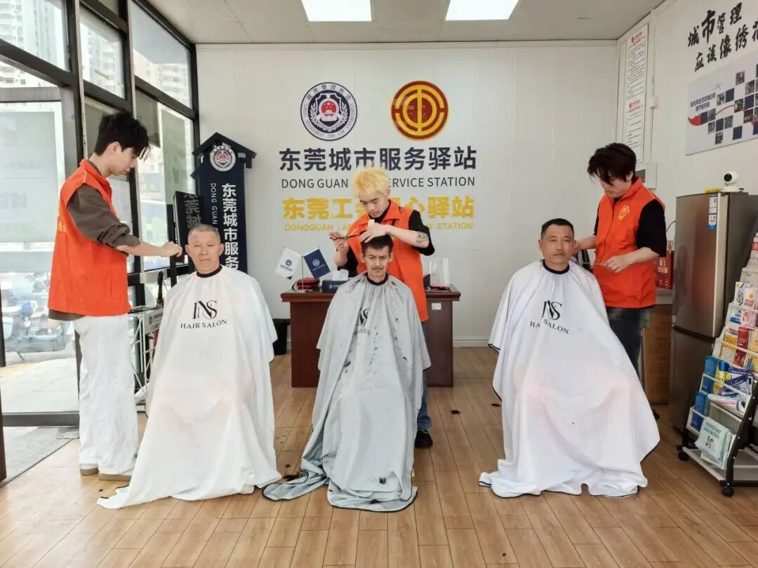 在西城广场工会驿站,义剪团队为环卫工人系好围布,聊起家常,熟练地理发,让这些日常经受风吹日晒、不畏严寒酷暑的户外劳动者享受专业理发服务。在他们细致的巧手下,环卫工人们都换了新发型。理发志愿者精湛的技艺和贴心的服务受到大家的一致好评。