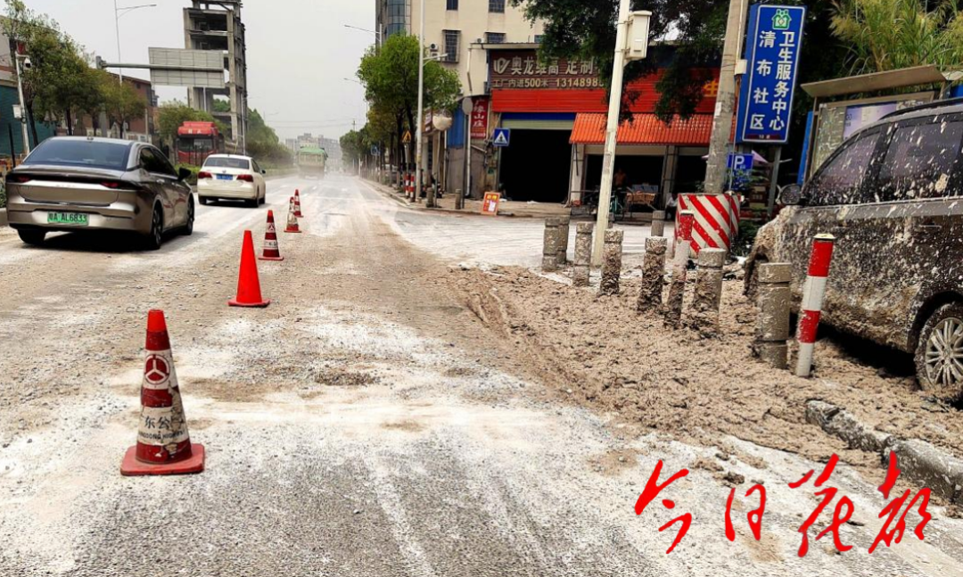 “我们判断应该属于运输车辆途经该路段时撒漏造成的。当时也有热心市民关注到这一突发事件,在12345广州服务热线平台反馈这一情况。由于污染路段靠近村口和社区医院的出入口,为保障行人和过往车辆安全,区公路养护所立即启动突发事件应急预案,马上调动8名应急抢险队员及作业车、洒水车等赶赴现场处置。”区公路养护所相关负责人介绍。