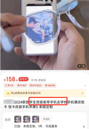 这类“饭卡手机”商品的标题上标有“上课不被老师发现”“定制产品”“爆改”等字样,售价在300元上下,有16GB和32GB存储规格配置,高配版还有无线充电功能。