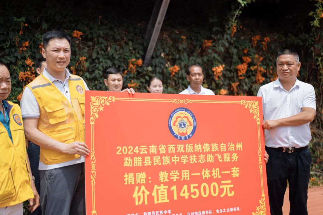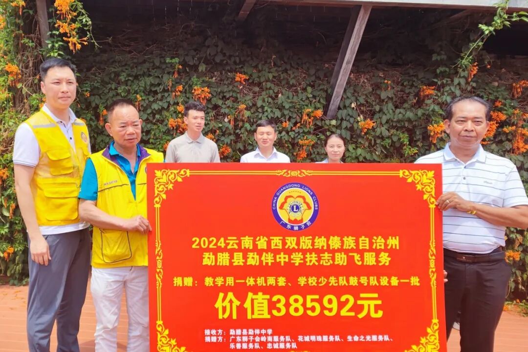 此次广东狮子会岭南服务队等5支服务队按照需求清单,向西双版纳州景洪市勐龙镇小街九年一贯制学校、勐海县西定乡中心小学曼佤小学、勐腊县民族中学、勐腊县勐伴中学4所学校捐赠了价值11.72万元的少先队活动器材、智能教学平板和中小学生必读书目等物资。