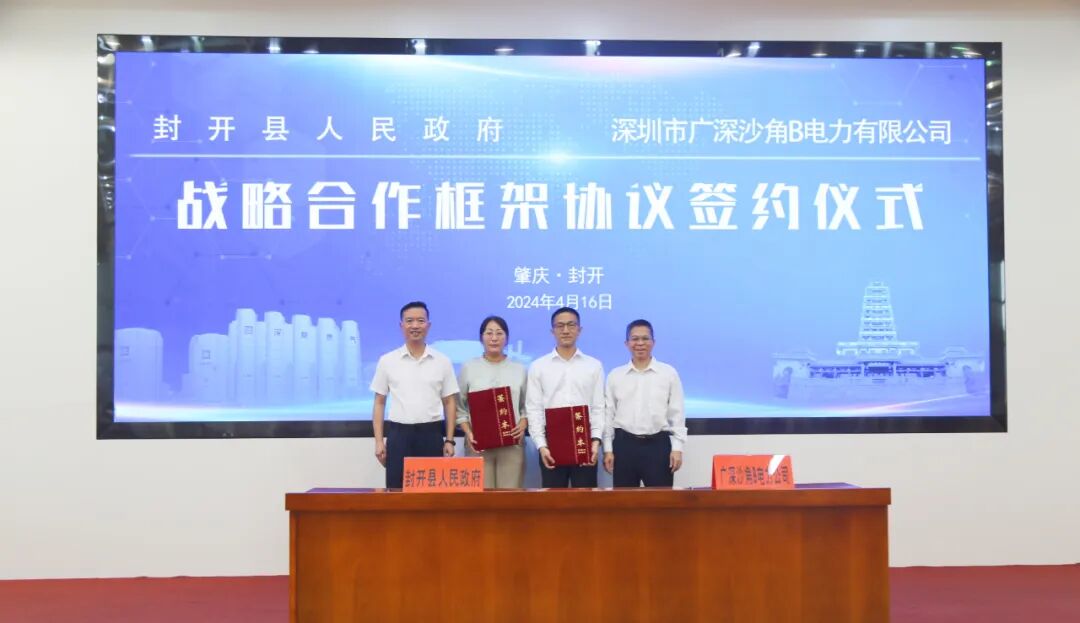 4月16日,封开县人民政府与深圳市广深沙角B电力有限公司举行战略合作框架协议签约仪式。深圳市广深沙角B电力有限公司董事长唐超光等企业代表,县委副书记、县长丘灿辉等县领导出席签约仪式。