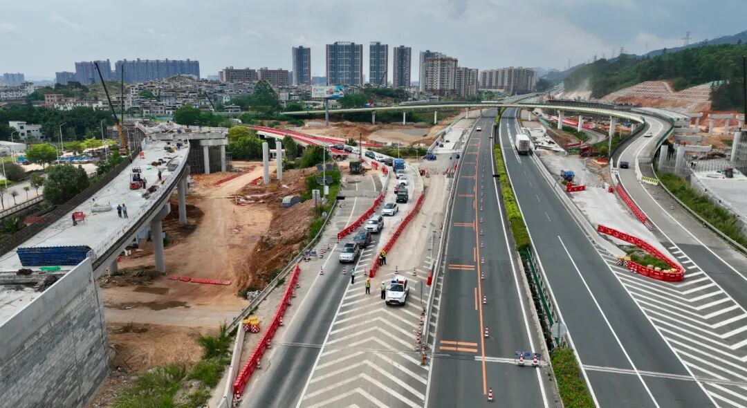 本次交通转换的路段为河源城北互通至东源互通北行的路段,交通转换桩号为K3486+300~K3495+700段。今天上午11时,现场施工人员将水马、反光锥等设施移除,交警、路政车辆缓缓向前驱动,有序引导后续车流进入新扩宽的道路上,各个转换点密切配合,井然有序。