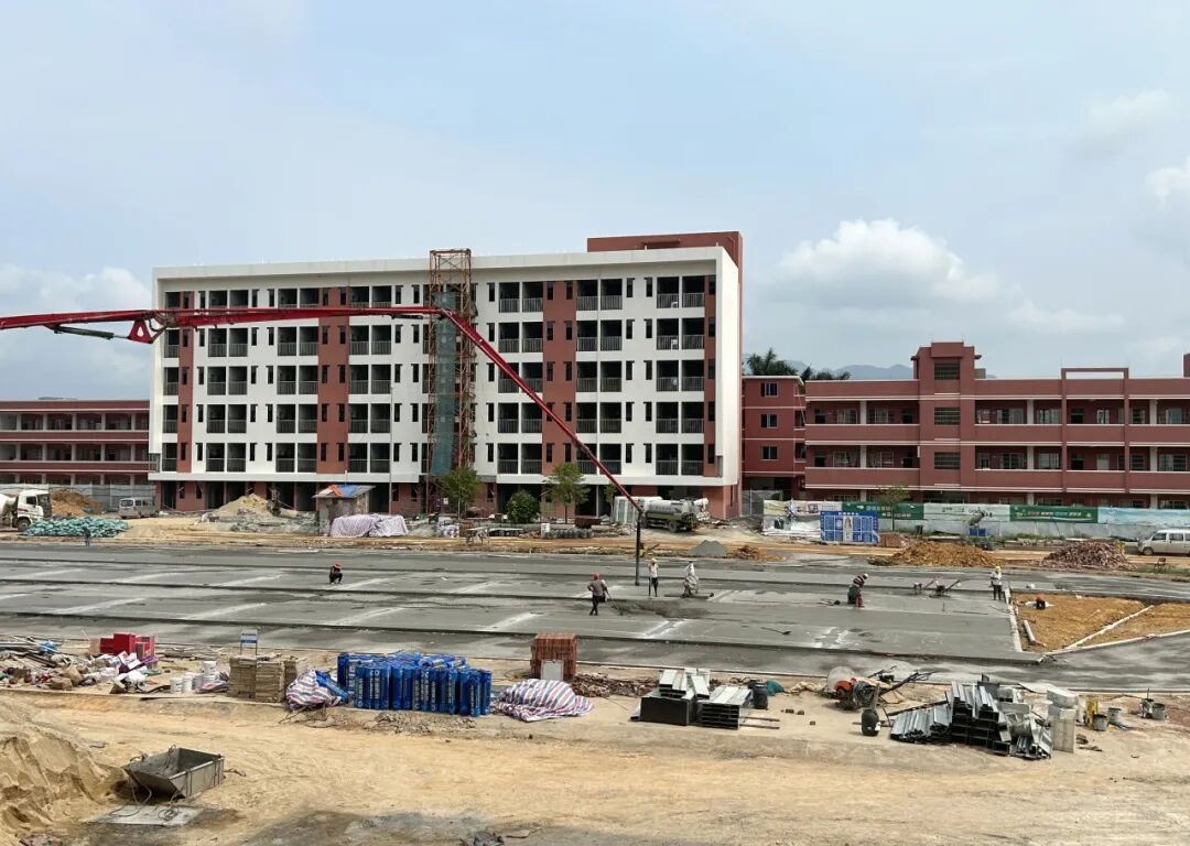 记者在施工现场见到,基地内的教学楼、教师宿舍楼等主体工程已基本建设完成,工人们正在进行室内装修等工作。同时,户外的足球场、篮球场等运动场地也在紧锣密鼓地建设中,工人们各司其职,相互配合着进行各项施工作业,现场呈现出一派热火朝天的繁忙景象。
