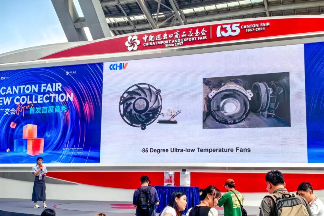 广东晟辉携带着自主研发制造的零下80度超低温风机在4月16日登上广交会展馆中央舞台,向中外客商展示了中国散热风机行业的顶尖技术结晶。