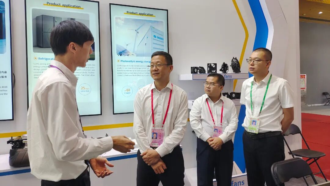 在新能源展区,广东晟辉的展位里陈列了上百款大大小小散热风机,这些风机能应用于家电、汽车、新能源光储充产品、消费电子及服务器等多个领域。