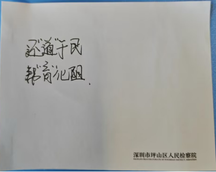 听证会结束后,听证员蔡彬彬还专门给主办检察官留了小纸条,书写:还“道”于民,帮“盲”化阻,给予高度评价。