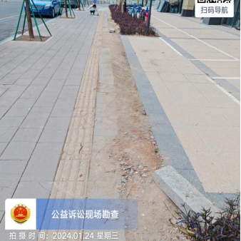 今年年初,坪山区检察院在履行公益诉讼监督职责过程中发现,市民对坪山街道六和社区和庆路恒大成二期南侧人行通道路面破损问题投诉较多,且问题长期没有得到妥善处理。1月24日,坪山区检察院公益诉讼办案人员前往现场勘查,发现和庆路恒大成二期南侧人行通道严重破损,路面存在明显凹陷沉降、地砖松动、碎裂、缺失,盲道不连贯等情况,雨天易积水,给市民出行造成不便,存在安全隐患。看看当时的现场情况: