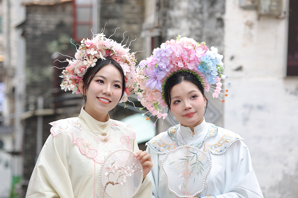 与泉州传统的红色簪花、