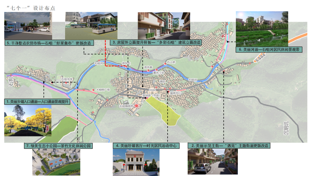 ▲石咀镇美丽圩镇“七个一”设计布点图