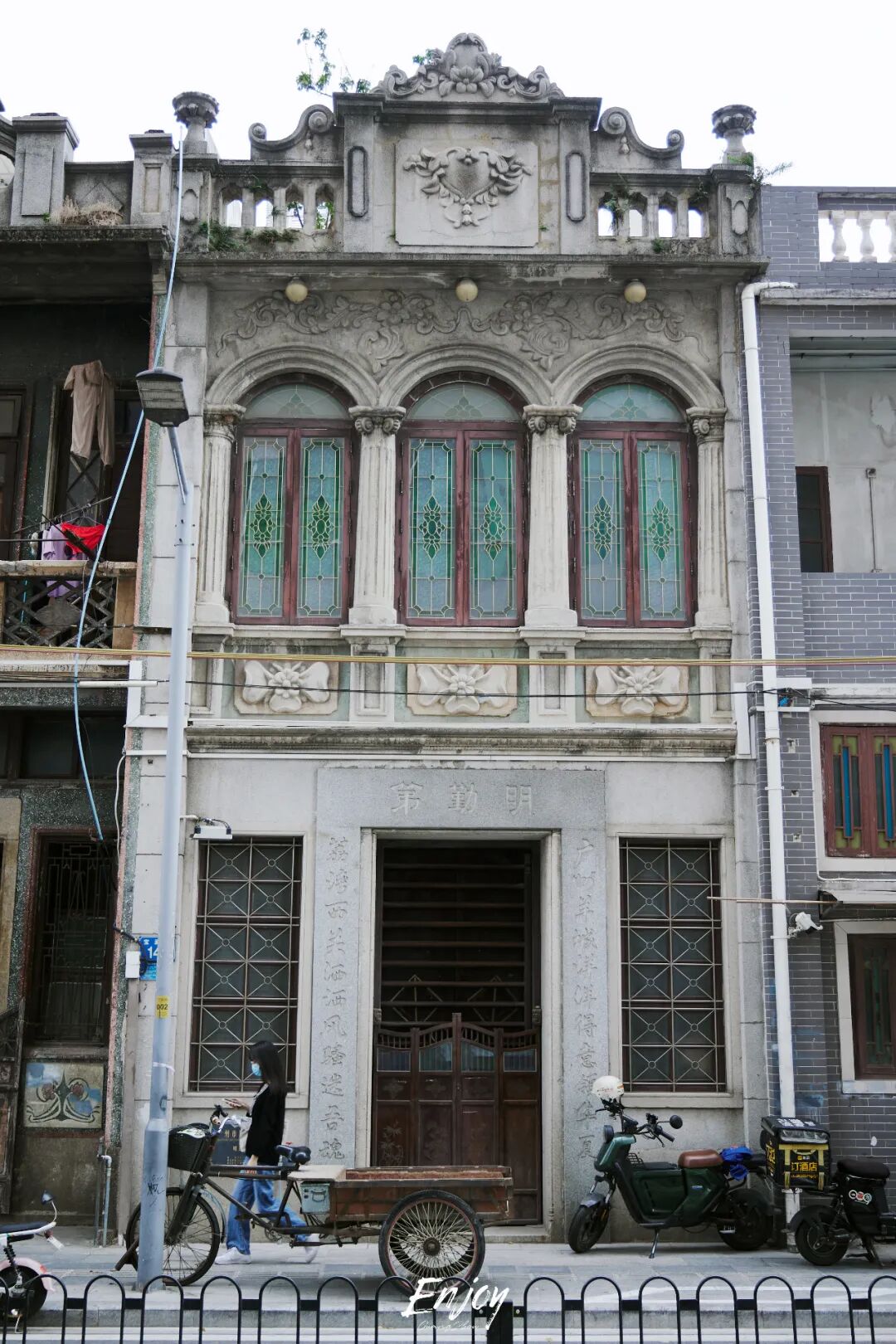 巷子的把角处,Art Deco风格的源来收藏民宿与西关老故事碰撞,十分洋气的骑楼外观,引起打卡拍照人群无限的幻想。
