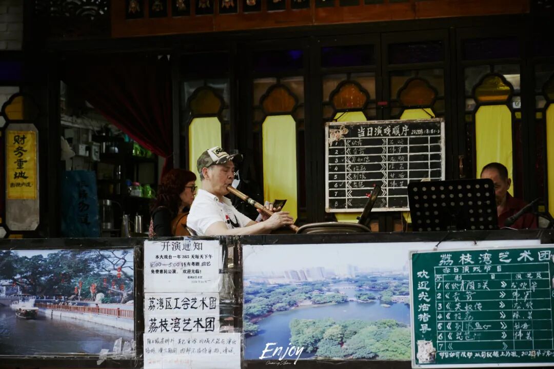逛累了可以在「荔枝湾大戏台」听场广式livehouse(不是),每日上演不同剧目的粤剧,听听粤剧、晒晒太阳、与阿叔阿婆聊天,惬意松弛的“退休”小日子就选在这里过了。