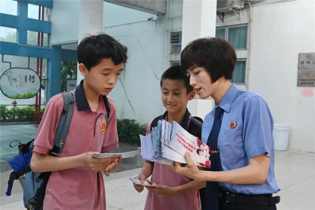活动中,检察官、法官跟蓝天学校校长、老师进行现场交流,让法治教育不仅是面对学生,还要面对老师和家长等群体。现场还向学生发放宣传资料,引导学生学习展板上的法律法规,持续强化对未成年人的法治教育。据汕头市金平区蓝天学校副校长王舒波介绍,学校利用好班会课、宣传栏等开展法治教育,提升学生法治小公民意识。同时结合心理课和心理咨询室等去帮助学生建立积极乐观、自尊自信等良好的心理品质。