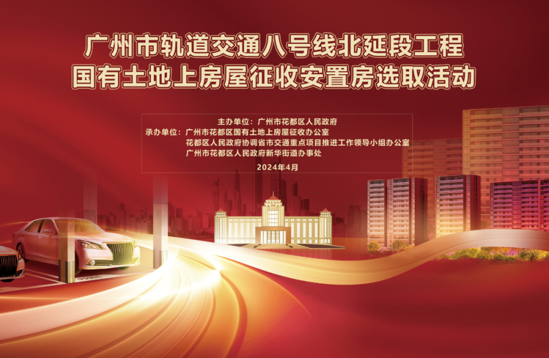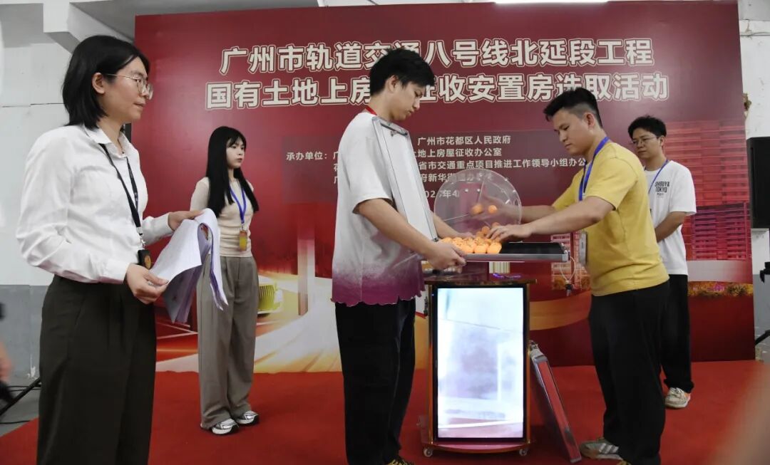 为确保广州市轨道交通八号线北延段工程居民安置房分配工作顺利进行,维护被征收对象的合法权益,根据国家、省、市相关法律法规、拆迁政策和《广州市花都区人民政府关于征收广州市轨道交通八号线北延段工程国有土地上房屋的决定》(花府征房〔2024]1号)、《广州市轨道交通八号线北延段工程国有土地上房屋征收补偿方案》等有关规定,花都区人民政府协调区国有土地上房屋征收办公室、省市交通重点项目推进工作领导小组办公室、联合新华街道办事处举行了这次摇珠选房活动。