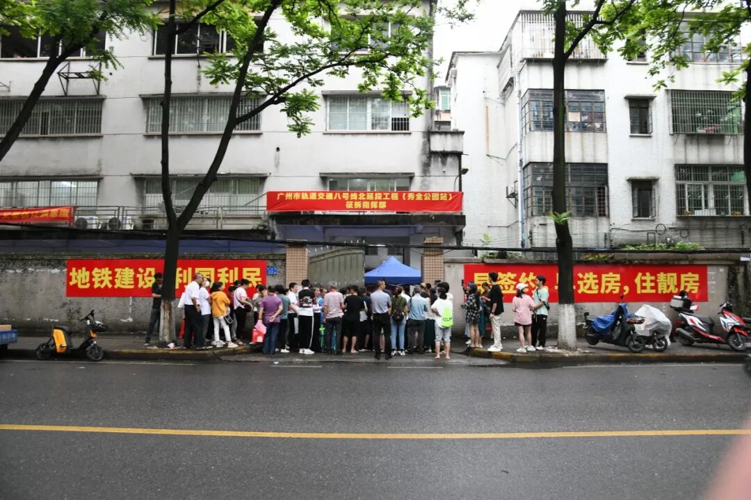 4月19日,广州市轨道交通八号线北延段工程摇珠选房活动在征拆指挥部举行,当天共有112户选定了118套房。