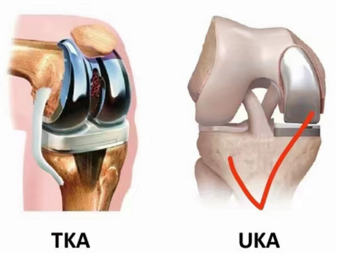 膝关节单髁置换术(UKA)是相对于全膝关节置换而言的一种微创手术。膝关节单髁置换术只是对膝关节内侧或者外侧膝关节表面进行修整置换,用人工关节替代关节损坏的表面软骨和软骨下骨,恢复膝关节原始的关节功能,缓解患者的疼痛。该技术不损伤膝关节的韧带,以最小的切口,最大限度地保留患者的本体感觉和关节功能。