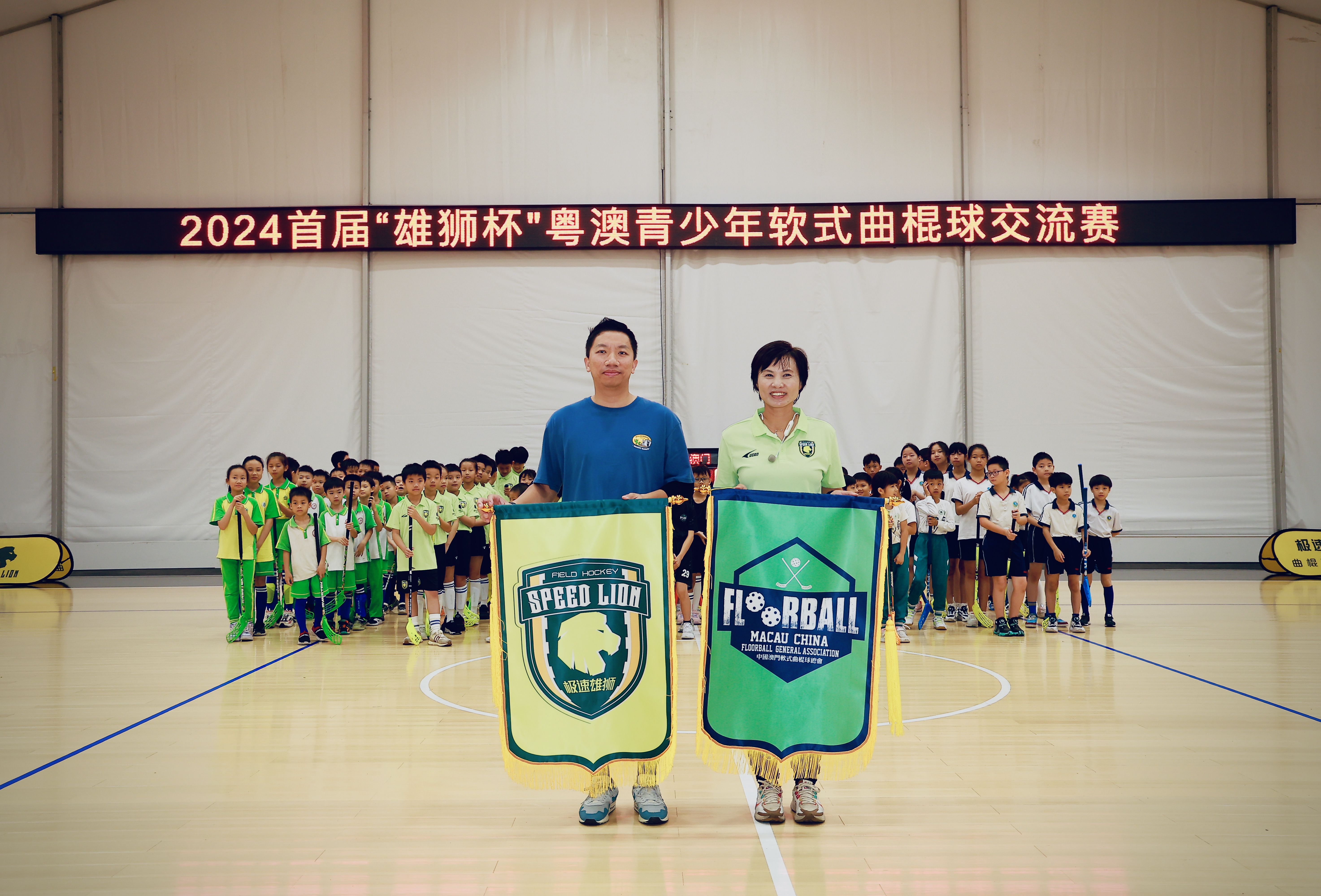 交流赛开幕式,由中国澳门软式曲棍球总会主席黎宁先生代表中国澳门队,与广东省曲棍球协会理事兼裁委会主任麦少颜女士代表广州队伍与广州极速雄狮曲棍球俱乐部,进行双方交换队旗仪式,宣告着粤澳曲棍球运动的比拼和交流正式启动。