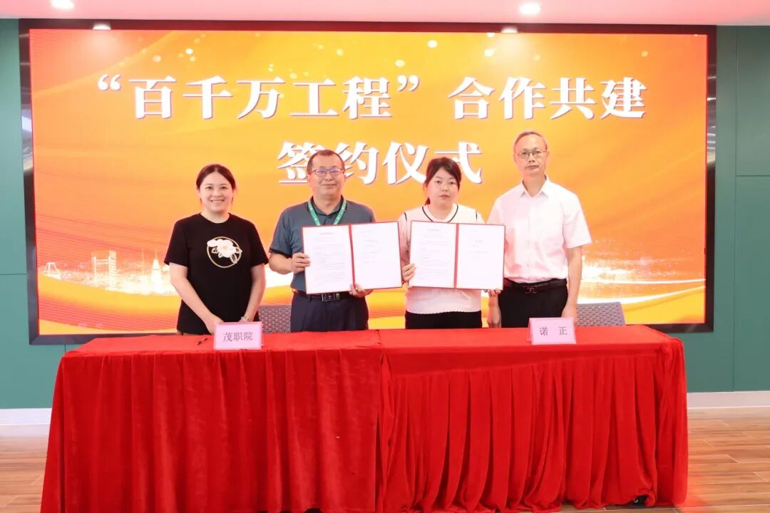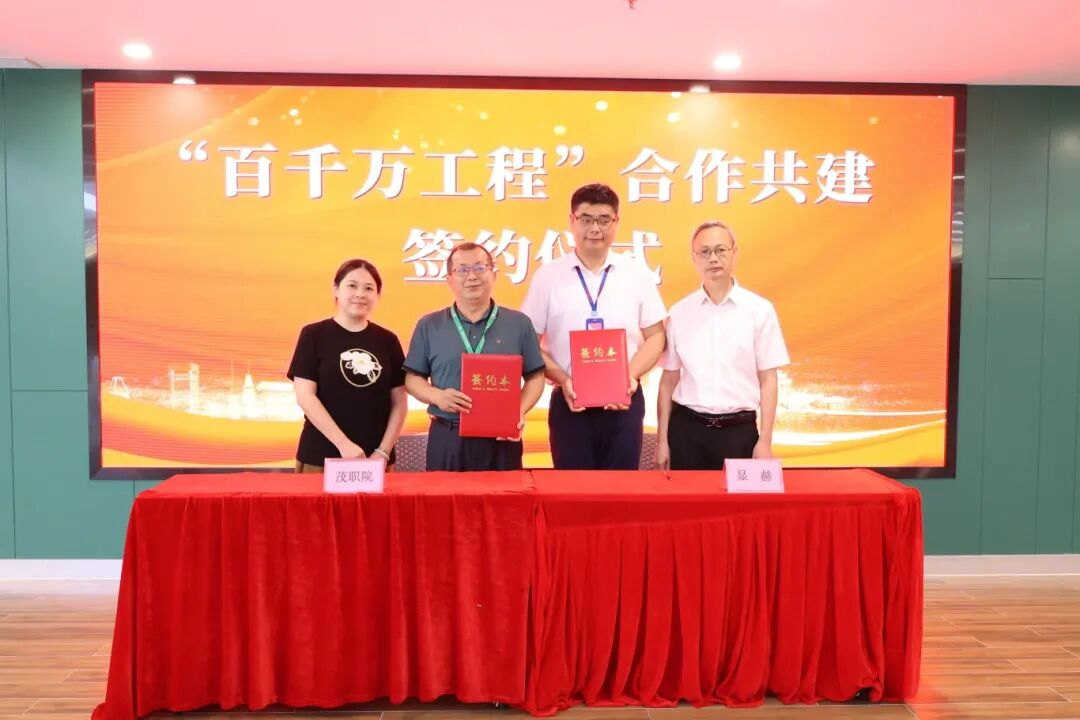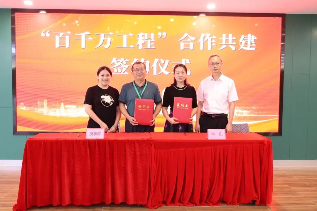 据悉,为充分发挥校企优势,按照“优势互补、资源共享、互惠共赢、共同发展”的原则,广东华庄科技股份有限公司、广东诺正电子股份有限公司、东莞市显赫电子科技有限公司与茂名职业技术学院建立长期、紧密的合作关系,在授牌及基地建设、科研与技术合作、合作办学与毕业生就业、共同建设专业及课程、共同培养师资等方面加强共建。