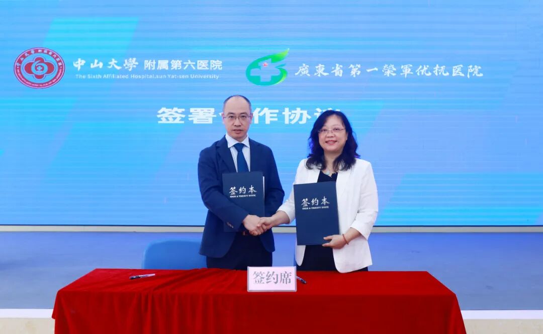 仪式上,各方领导共同为“中山大学附属第六医院合作医院”揭牌;我院院长吴小剑、省第一荣军优抚医院院长曾嵘代表双方签署合作协议;我院李汉荣书记、姚麟副院长、骆衍新院长助理向省第一荣军优抚医院合作科室授牌。