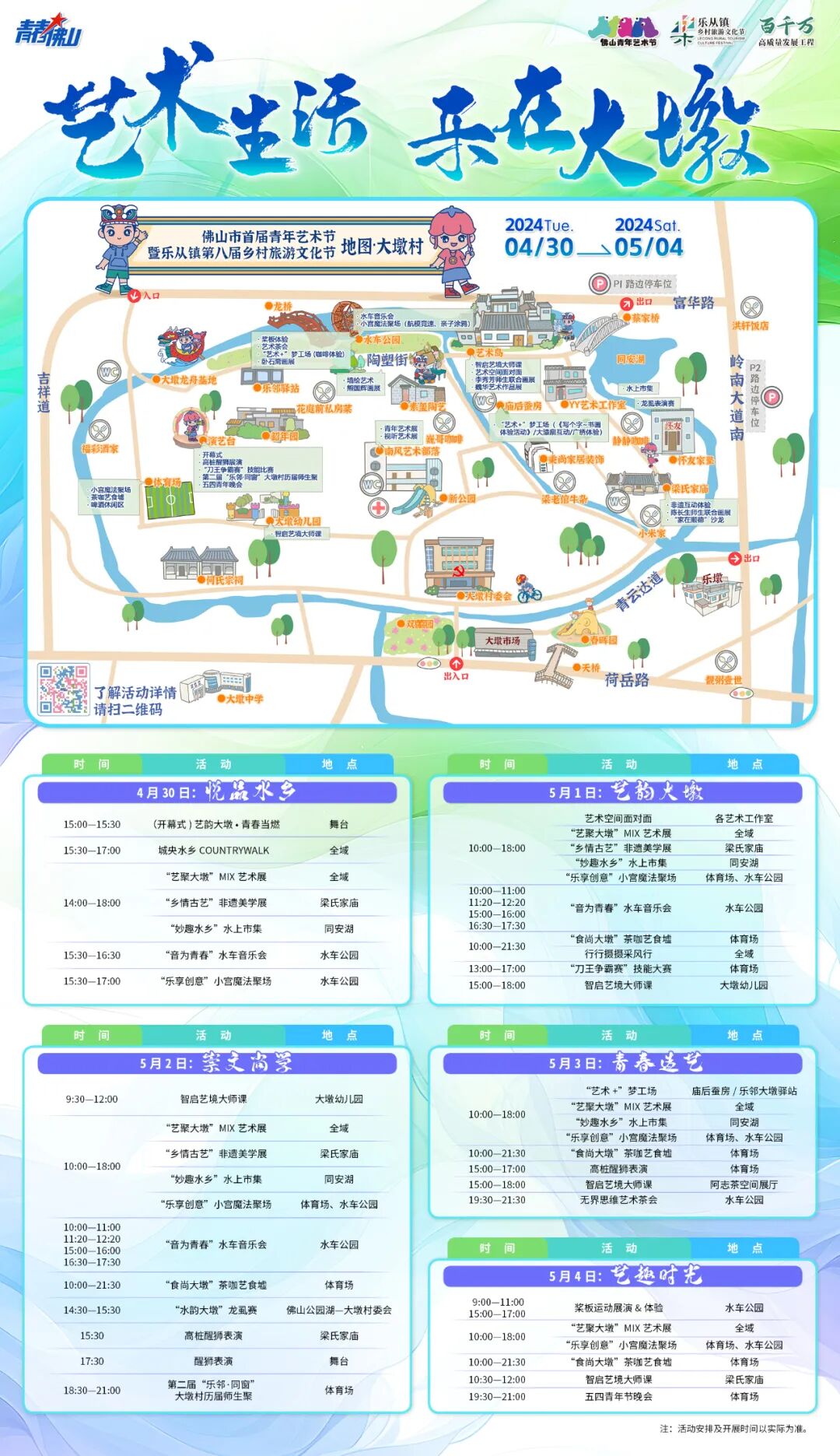 为展现新时代佛山青年的精神风貌,推动青年下乡返乡兴乡,助力“百千万工程”建设,引领青年在社会实践中建功,厚植艺术创作的土壤,塑造水乡生活的新范式、新场景、新业态,推动文化艺术和水乡文旅融合发展,共青团佛山市委员会、顺德区委宣传部(顺德区文化广电旅游体育局)、共青团佛山市顺德区委员会和乐从镇人民政府联合举办此次艺术节。