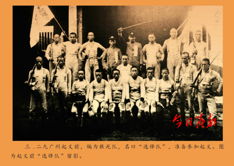 据史料记载,1911年4月26日(农历三月廿八日)夜,徐维扬星夜兼程赶回三华村,在“集之徐公祠”后座番花同盟会分会点,召集勇敢善战、精悍可靠的青壮年百余人,组成“选锋队”(即“敢死队”)。