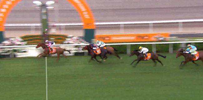 “浪漫勇士”在麦道朗胯下力压“遨游气泡”摘下锦标 图片来自HKJC