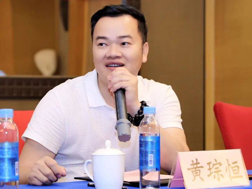 东莞市盛马桂电子玩具有限公司董事长、我商会常务副会长黄任桥介绍在河池投资项目发展情况。黄董表示,自己返乡投资已经12年,现今根据企业的发展策略,再次升级投资智能电子玩具上下游产业园,结合都安丰富的产业资源优势,与盛马桂本身的企业优势相叠加,相信在不久的将来成功落地生产,为都安经济社会高质量发展贡献力量。