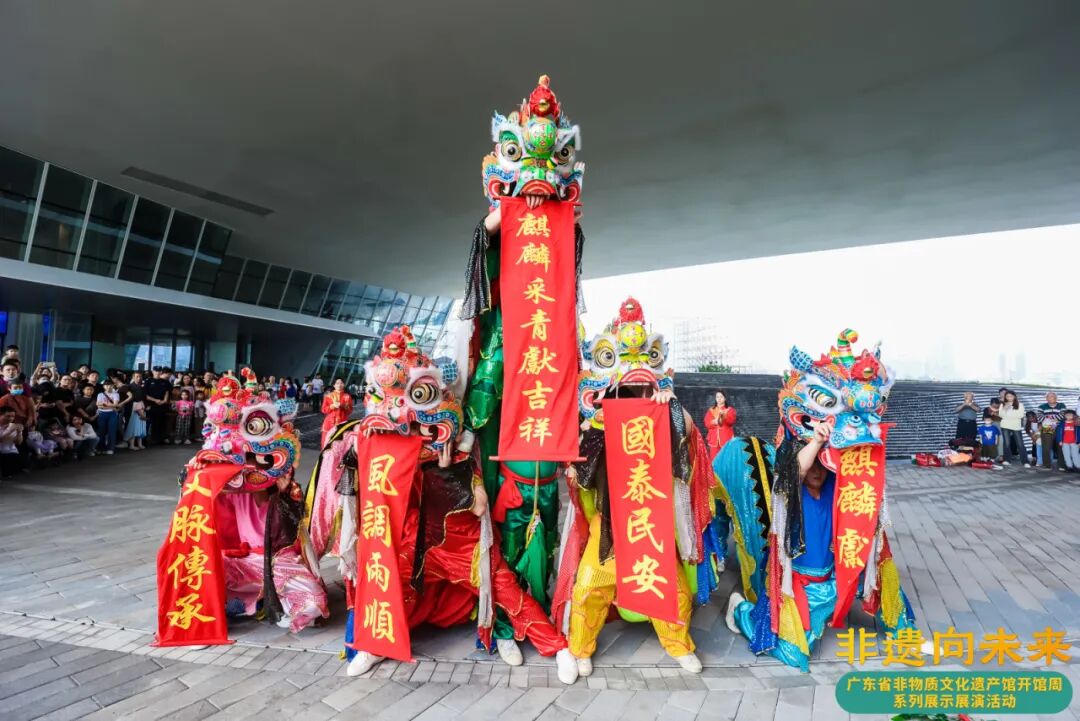 5月5日,樟木头麒麟队受邀参加广东省非物质文化遗产馆开馆周展演,通过传统的麒麟音乐与舞麒麟的艺术手段,让广大游客近距离感受麒麟文化的魅力。