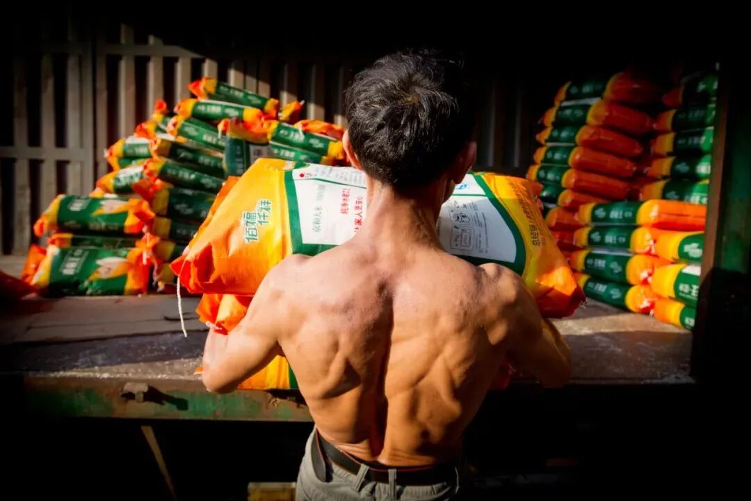 搭档打趣地说:“老张,抱着老婆睡,赖床了吧?我们都干半天活了!”老张只是憨憨一笑,没做声,扛起了压在肩上的五包大米,轻快地迈开了脚步。他将大米扛上车后,用搭在肩上的垫布擦了擦汗,又赶紧返回店内扛米。