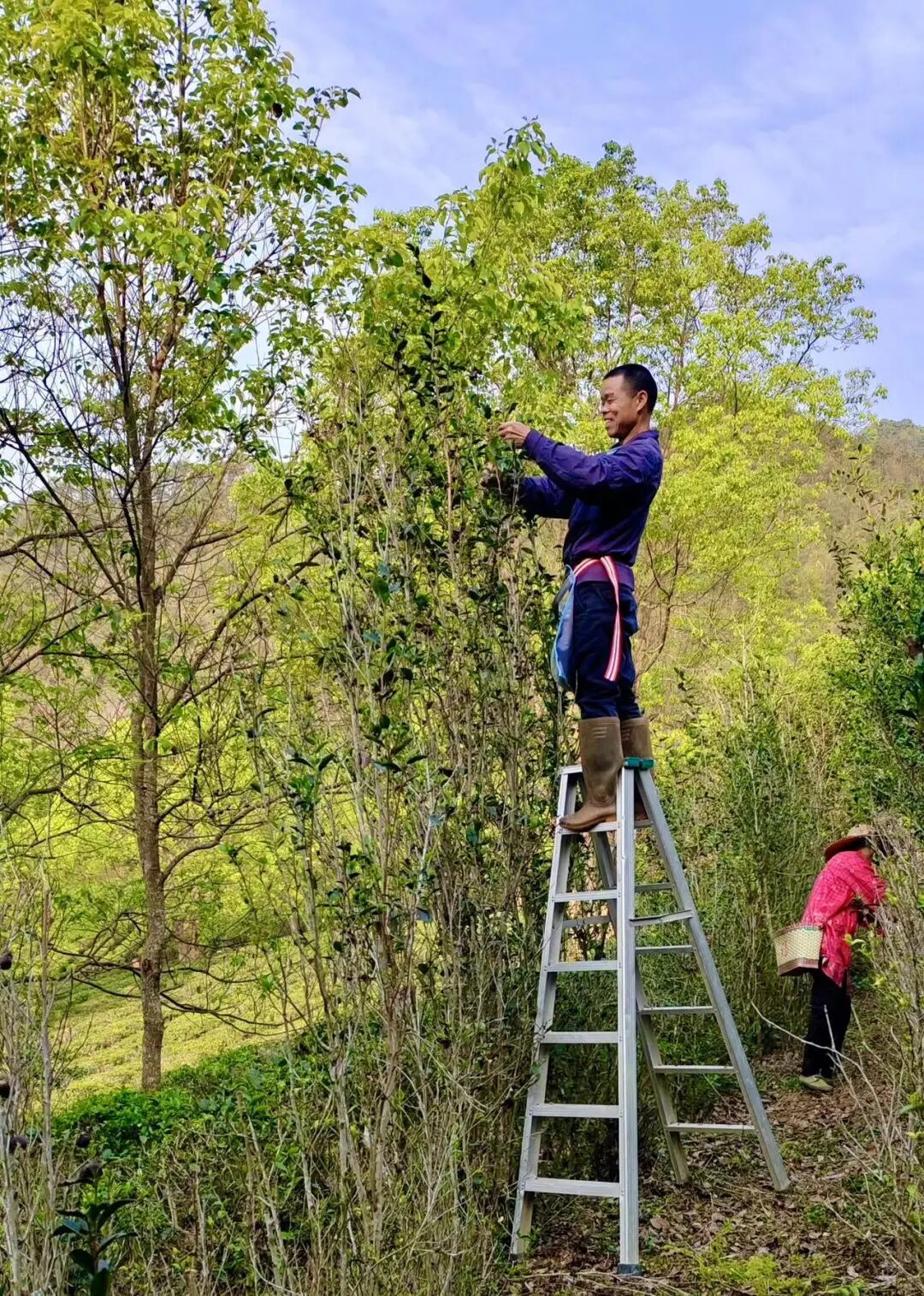 原生态高山茶一年只采一季,那就是采春茶,其余的时间就让它自由生长。与普通茶叶的采茶方式不同,高山茶需要采茶工人爬在高约2米的梯子上,采摘着茶树上的嫩叶。相比于普通山茶,这种原生态高山茶更为珍贵,口感也更好。
