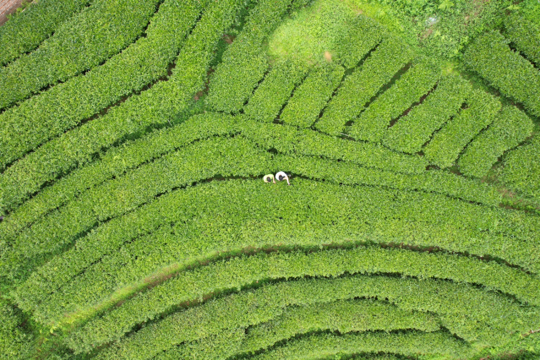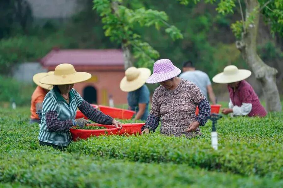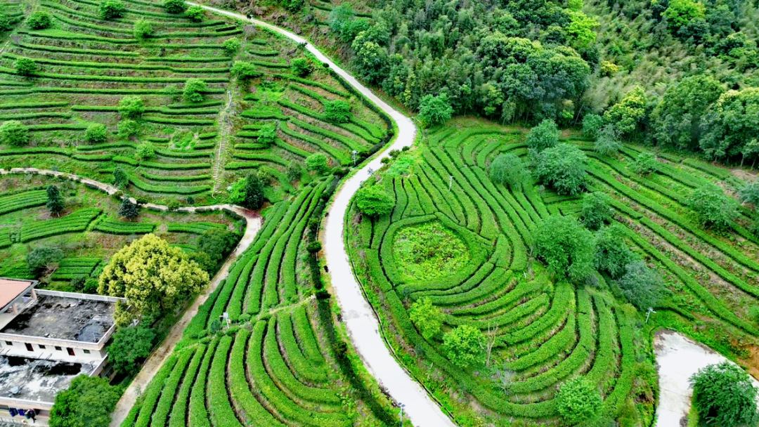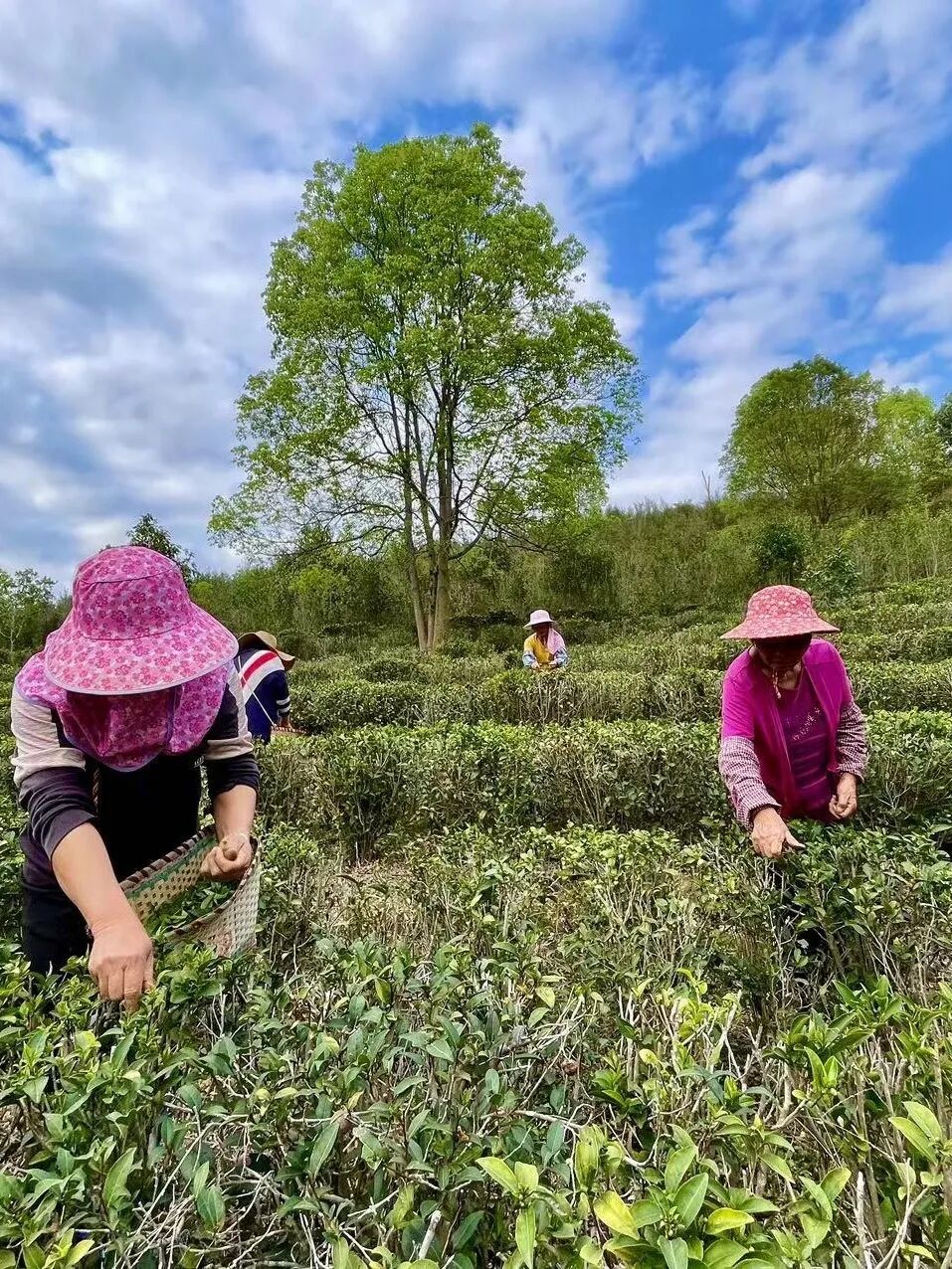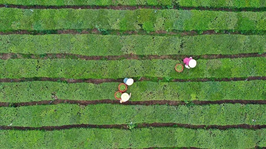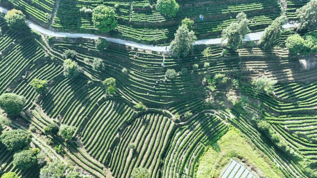 柏塘镇罗塘村万亩茶园,石岗村“百里茶乡”,青翠环绕,茶香溢远。茶农们穿梭于茶垄间,娴熟地采摘茶叶。