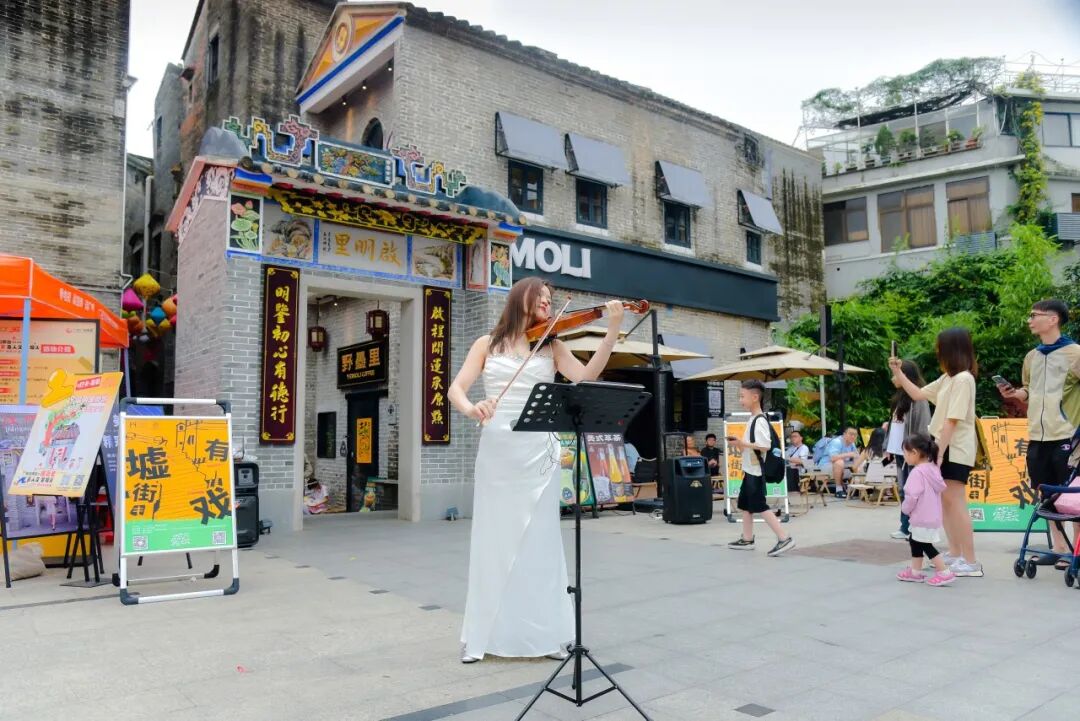 “五一”小长假期间,由江门市文化广电旅游体育局指导、江门市文化馆主办的“墟街有戏”在启明里小广场上演精彩“快闪”,为广大市民游客送上了激情五月的第一波文化惠民福利,助力长堤历史文化街区热度和“江门三点三精彩之旅”一路狂飙。