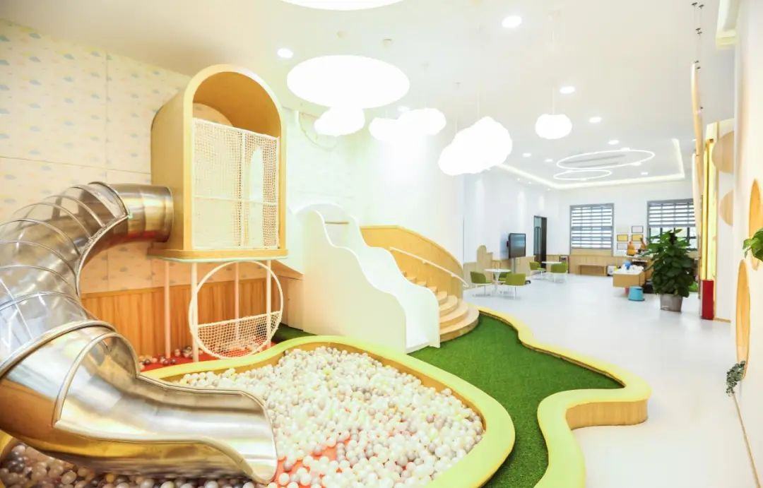 中心已正式通过国家托育系统的备案,总面积1800平方米,共开设11间教室,配有户外操场及独立厨房,室内并设有游戏大厅、滑滑梯、波波池、感统大厅、水育室、绘本区等区域,让孩子能在健康、舒适、快乐的环境下成长。