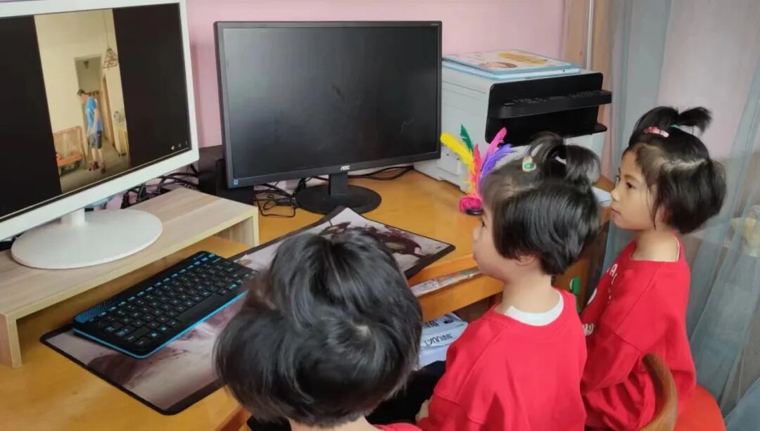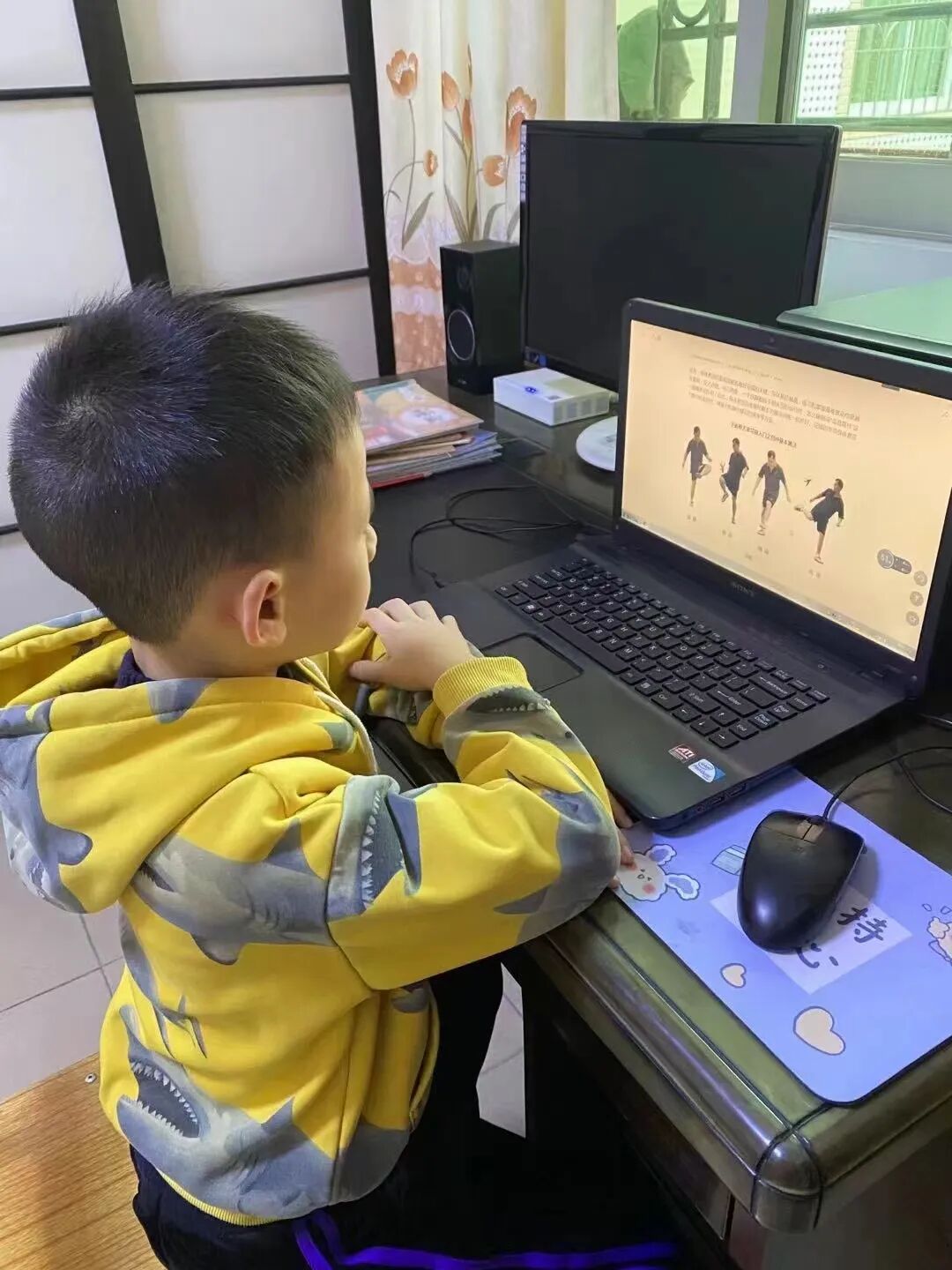 小朋友通过云平台向潘伟璘学习踢毽技术