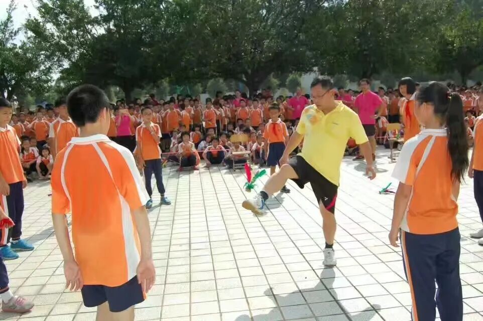 潘伟璘和同伴应邀到市桥桥东小学分享踢毽基本功