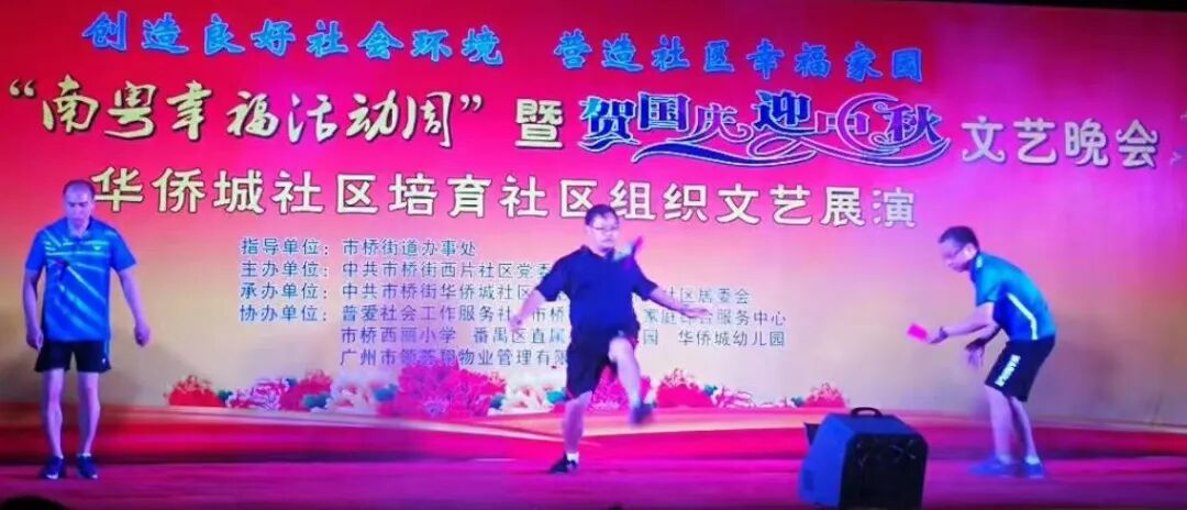 潘伟璘(中)和同伴应邀到市桥街华侨城小区分享毽技