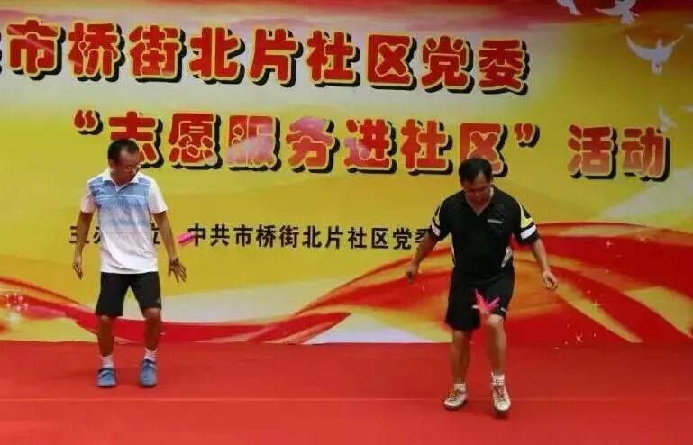 潘伟璘(右)和同伴应邀到市桥街北片社区展示毽技