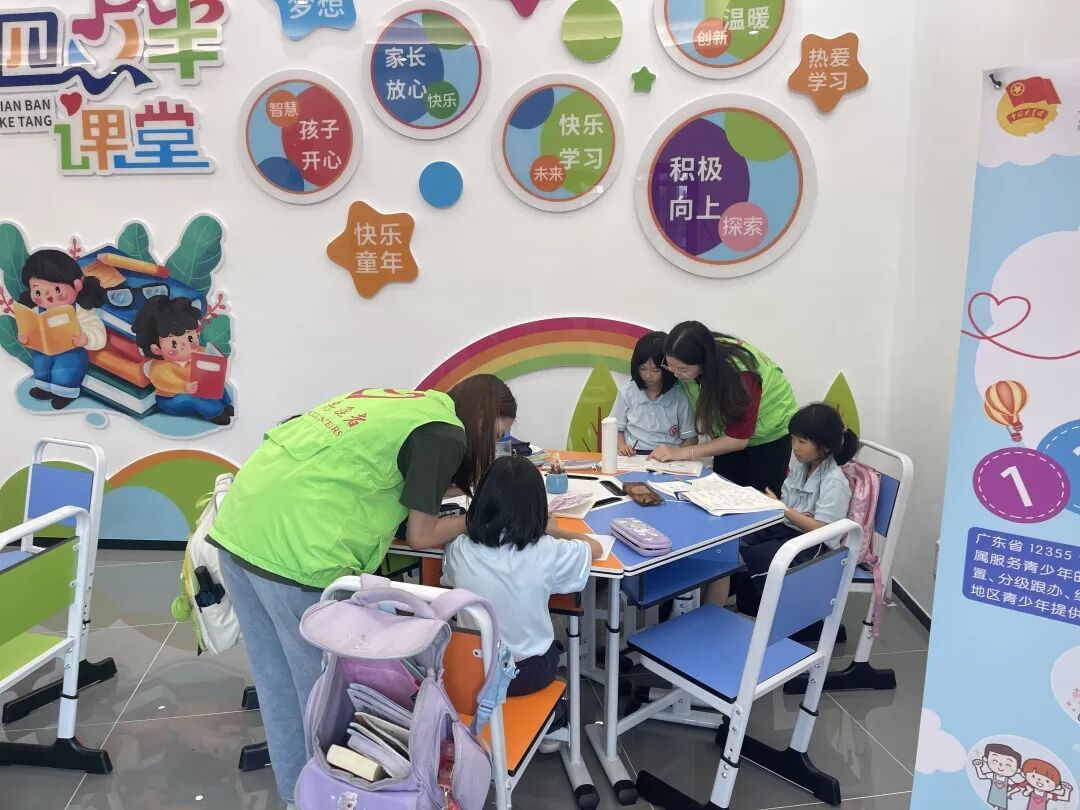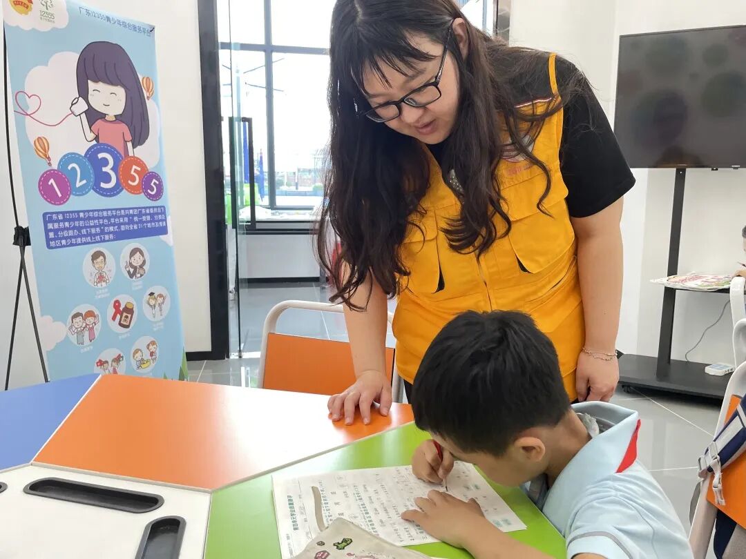 在企石镇12355青少年服务中心,志愿者们不仅辅导孩子们功课,还每周五定期开展知识小课堂,通过趣味课堂让青少年们学习到普法及自护知识,让孩子们在轻松愉快的氛围中度过一个充实而愉快的时光。