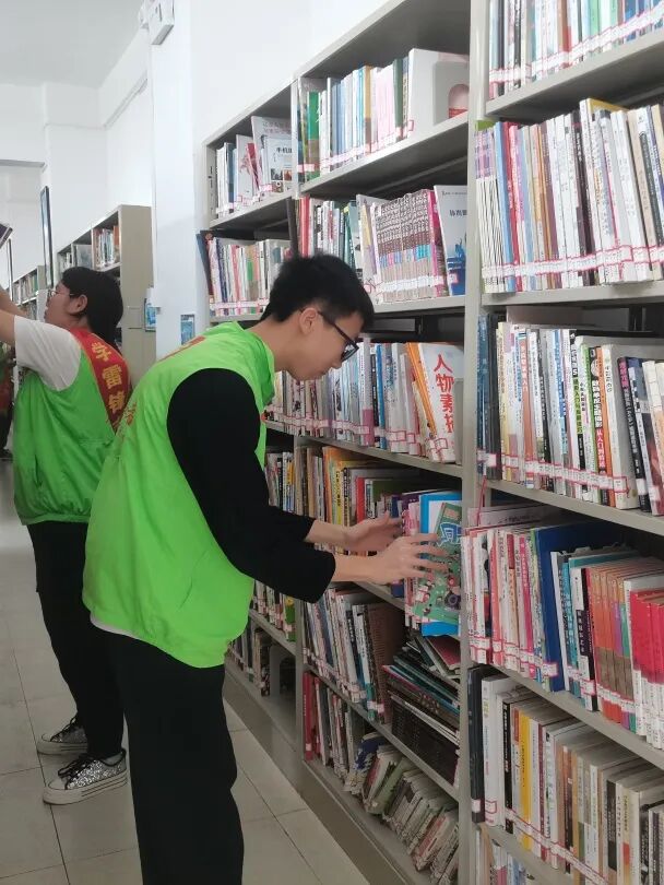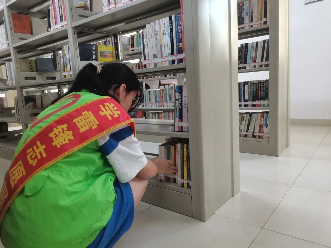 活动中,志愿者们对馆中各区有条有理地进行图书分类、书架清洁打扫以及图书上架摆放工作,为市民营造了良好的学习与阅读环境。