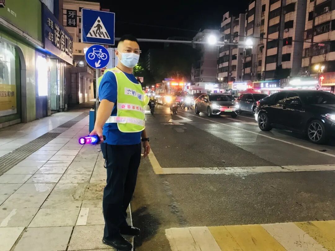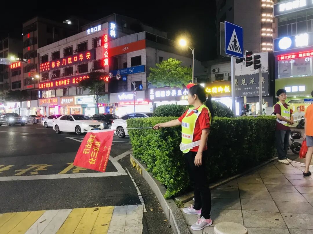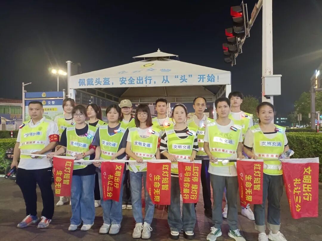 团镇委、镇志愿者协会组织志愿者在企石镇主要交通路口高峰期认真开展文明交通引导活动。志愿者们来到宝石红绿灯交通岗的十字路口,协助指挥交通。志愿者们身穿绿马甲,或手持文明交通旗,或手持交通指挥棒,用手势、言语等方式引导市民规范行车走路,维持交通秩序。