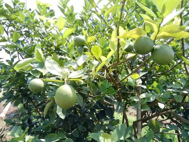 7月-12月,在车村村柠檬果园,无籽青柠和优力克青柠两个品种青青的柠檬藏在绿油油的树枝间散发着诱人的香。