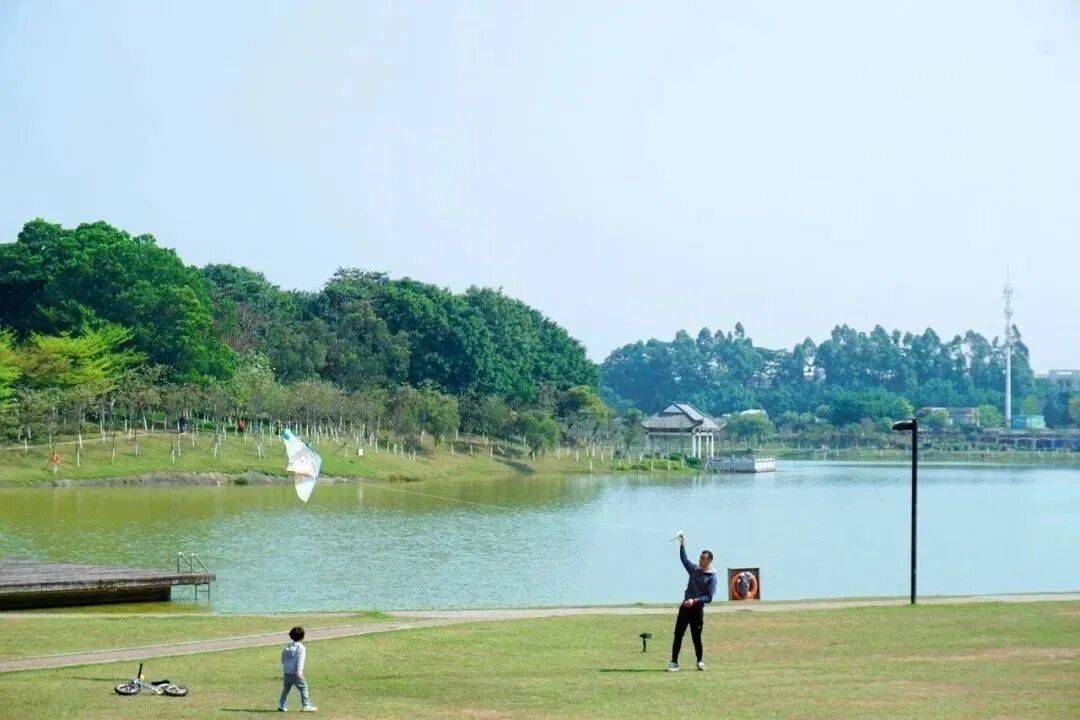 大学城中心湖公园夏日的广州大学城中心湖公园