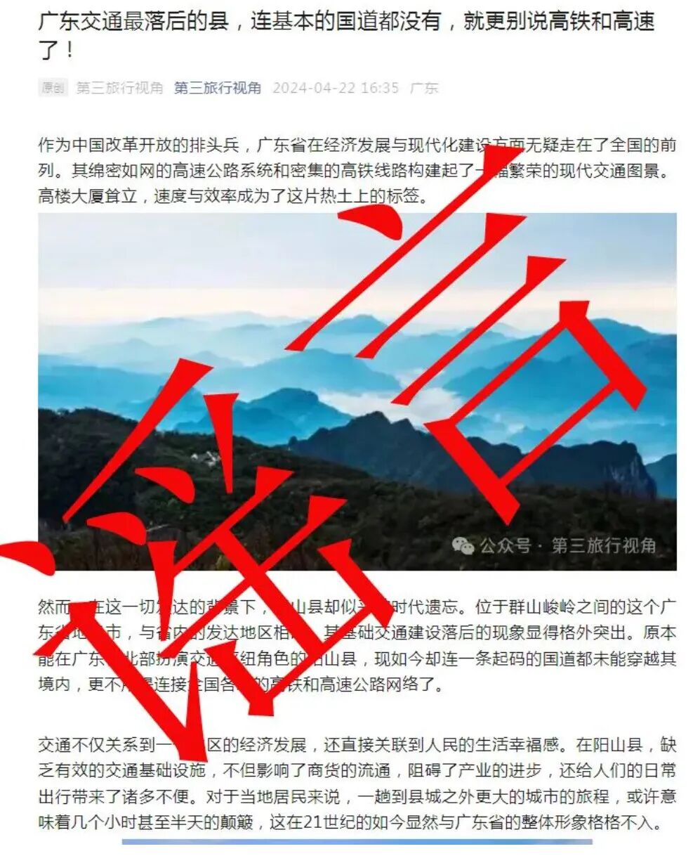 近日,某旅游自媒体发布图文称:“在广东交通最落后的县,连基本的国道都没有,就更别说高铁和高速了……”,文中认为阳山作为广东北部交通枢纽角色,如今连一条起码的国道都没有穿越其境内,更别说高速和高铁网络。