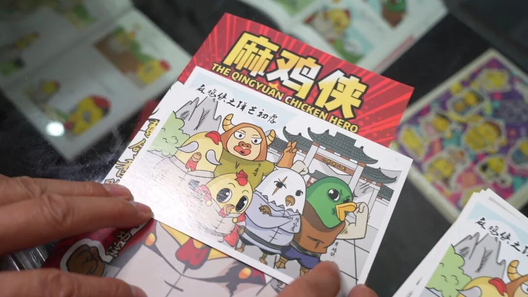 清远鸡文化馆中心的显眼位置,摆放着以清远鸡为创作灵感设计的卡通IP“麻鸡侠”,以及配套系列文创产品。今年文博会期间,赖伟良也会将这些“宝贝”带上文博会,向世界各地的观展者讲述“麻鸡侠”的愿望。