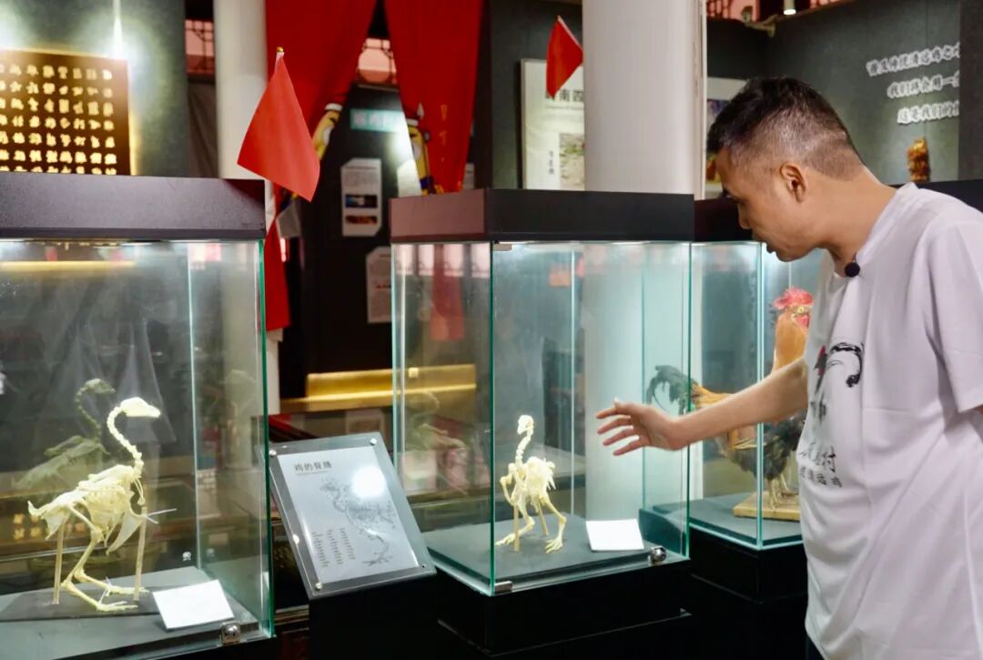 为了帮助市民游客快速区分清远鸡,赖伟良还在文化馆内展出了两副鸡的骨架标本。按照真实的骨架形态,同样饲养150天后,其他肉鸡骨架更高大,而正宗的清远鸡骨架更小更紧凑。赖伟良说,这也是为什么正宗清远鸡的体重更小,骨更软、肉质更鲜美的原因。