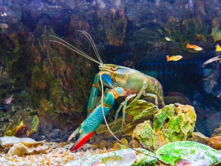 虾钳带点红、虾钳臂有着淡蓝色、虾体色褐绿。在惠州市新蓝龙生态农业科技有限公司的养殖基地,记者见到了淡水蓝龙虾的真容。与平常所见的养虾场不同的是,这里的蓝龙虾养在标准的厂房里,厂房内采用流动水源进行循环,蓝龙虾在标准化的池子里生活。记者留意到,每个池子都摆放着一些“小房子”,供蓝龙虾歇息、躲藏。厂房内温度适宜,光线柔和,亮度适中,适合蓝龙虾的生长。记者采访时,时值白天,光线充足,蓝龙虾大多躲在它们自己的“小房子”里,有的探出脑袋,有的俏皮地游出来,然后又游回去。
