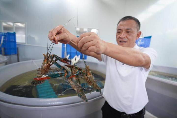 在博罗县龙溪街道夏寮村,当地盘活闲置鱼塘资源,引进了惠州市新蓝龙生态农业科技有限公司项目,利用自动化厂房养殖、标准化池塘养殖,向农业新质生产力借力,发展淡水蓝龙虾特种水产养殖产业集群,助推乡村的产业振兴。目前,项目首期已基本完成,淡水蓝龙虾养殖面积超过200亩,成品虾陆续产出,联农带农的效益初显。