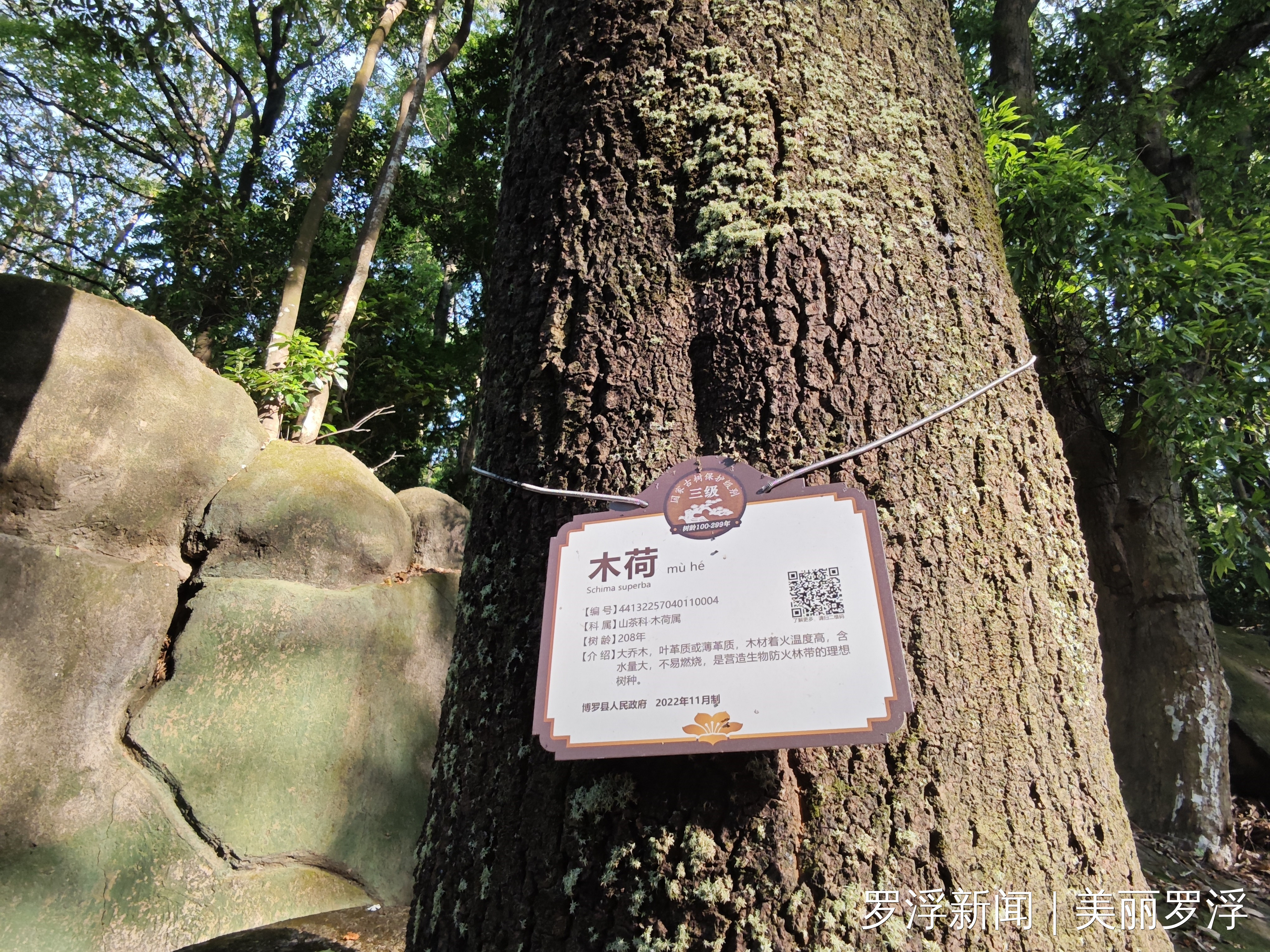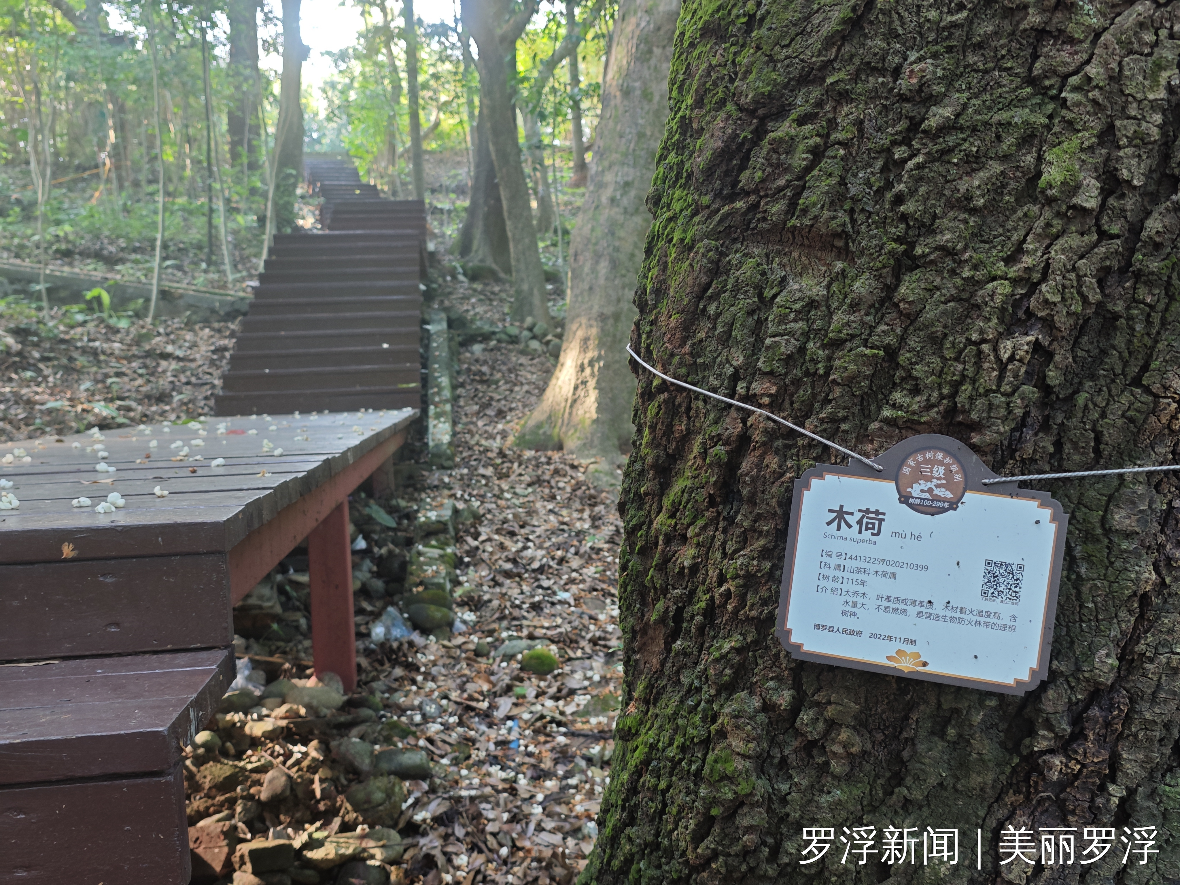 木荷的花非常漂亮,盛花期的时候满树白花,就像一朵朵小荷花立在枝头,因此得名木荷。木荷的花跟茶花颇有相似之处,花心插满黄色雄蕊,花谢时全朵掉落。又因为树高,望过去就像树上开满白色荷花。罗浮山景区的木荷年份大部分在50-210年之间,斑驳树干纹路清晰可见。木荷树形美观,树姿优雅,枝繁叶茂,四季常绿,木荷新叶初发及秋叶红艳可爱,是道路、公园、庭院等园林绿化的优良树种。《植物名实图考》中称木荷为“材中栋梁”,可作“宫室器具之用,益于民大矣”,现代纺织业中的纱绽、纱管多用它制作,也是桥梁、船舶、车辆、家具、农具等的优良用材。