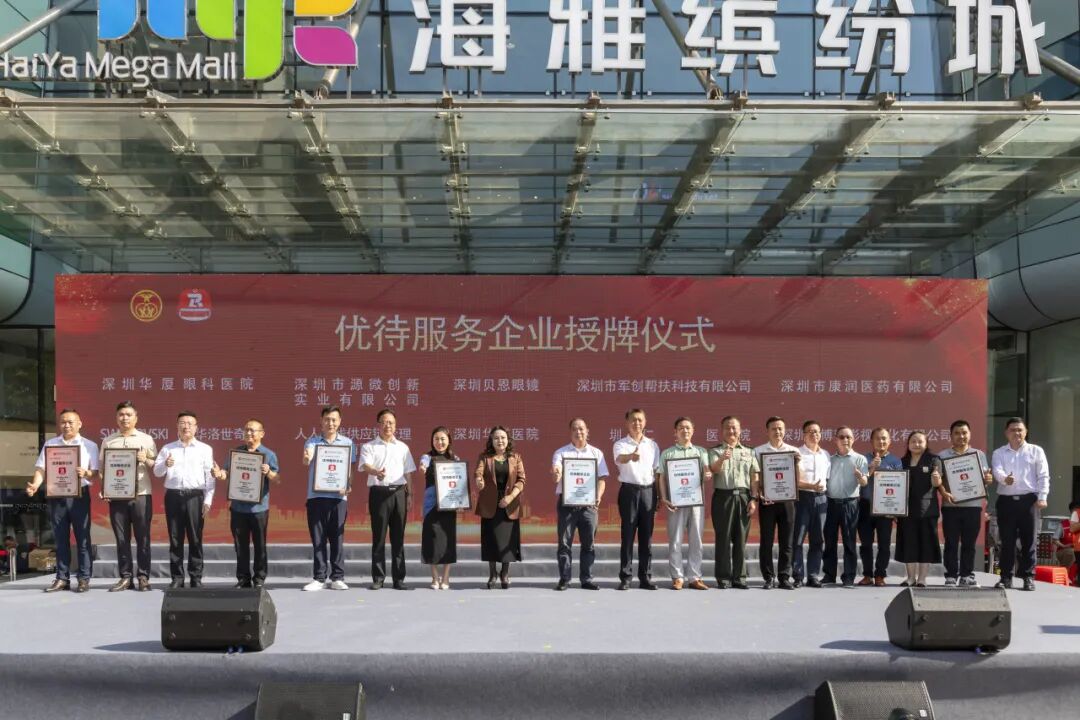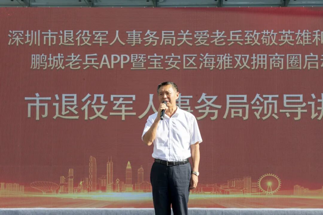 5月16日,深圳市退役军人事务局在宝安区新安街道海雅缤纷城举办仪式,为鹏城老兵APP老兵商城千余户优待企业(项目)50家代表和宝安拥军门店10家代表授牌,同时,给宝安区海雅双拥示范商圈揭牌。市退役军人事务局党组书记、局长张悦华,宝安区委常委、区武装部政委王危等领导同志出席。